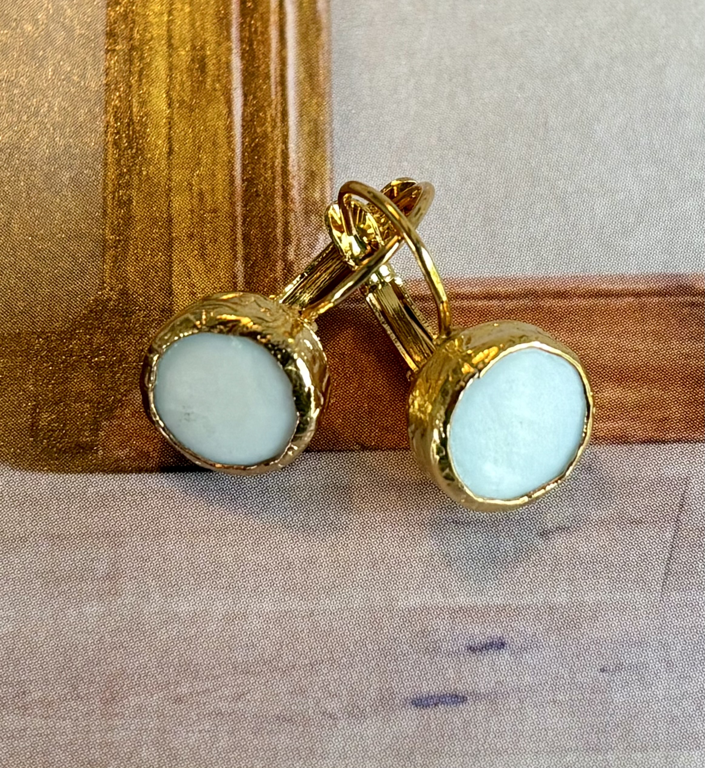 Mooi deze vergulde oorbel met parelmoer met ronde vorm. Echt zo´n oorbel die je altijd kan dragen! Met fijne sluiting. Grootte ca 1,5 cm. Gratis verzending in NL en Spanje. Basis is messing, dan verguld. Nikkelvrij.
